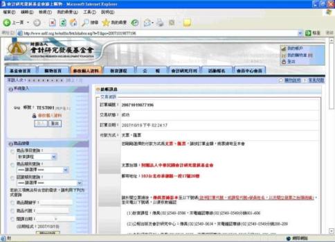 當您填妥訂購資料,按「開始結帳」,本網站將顯示完成訂購畫面